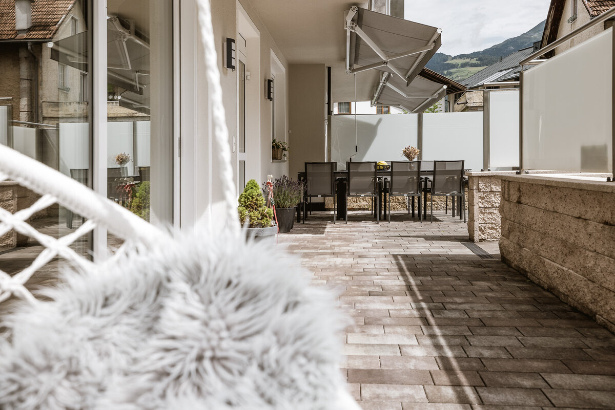 The XXL Apartment Ammonit is located on the ground floor and has been expertly transformed from a former retail space into a barrier-free, modern holiday apartment. Here, you can enjoy your holiday in Tyrol without limitations. The sunny terrace is directly accessible from the living area.